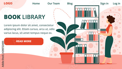 Векторная иллюстрация студенток женского пола в библиотеке колледжа или университета. Дизайн в плоском стиле.