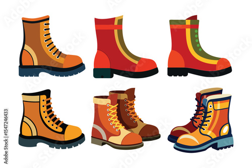 Набор векторных значков цветных резиновых сапог. Реалистичная иллюстрация дождевых ботинок, изолированная на белом фоне.