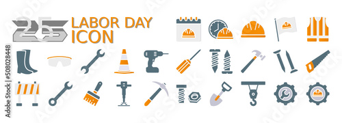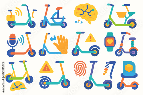 Набор векторных иллюстраций силуэта красочных музыкальных инструментов и музыкальных нот. Коллекция различного оркестрового оборудования в плоском стиле