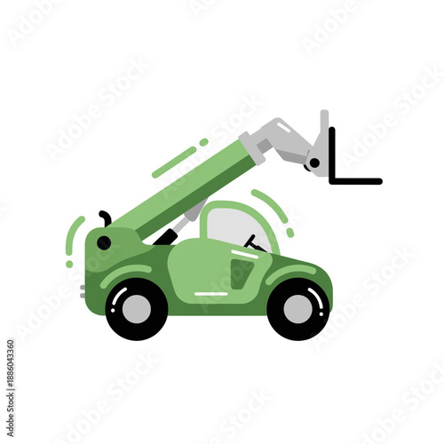 Зерноуборочный комбайн собирает подсолнухи в поле, плоская векторная иллюстрация. Первый этап производства подсолнечного масла. Сельское хозяйство, фермерство.