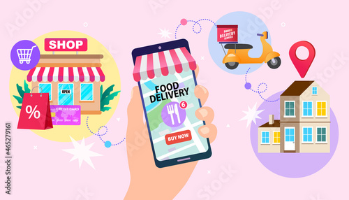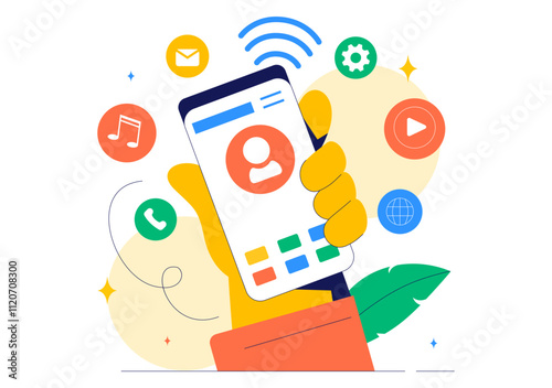 Общение с соседями онлайн, плоская векторная иллюстрация. Групповой чат соседей и онлайн-обмен сообщениями.