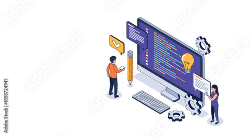 Иллюстрация дизайна в плоском стиле с векторным бюджетом компании. Концепция процесса бюджетирования и бизнес-планирования с большой копилкой, калькулятором, крошечными людьми, делающими финансовые расчеты для веб-баннера, веб-страницы.