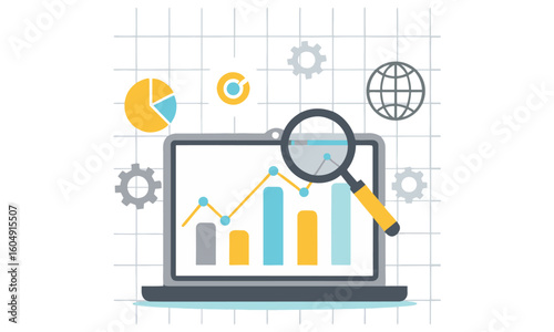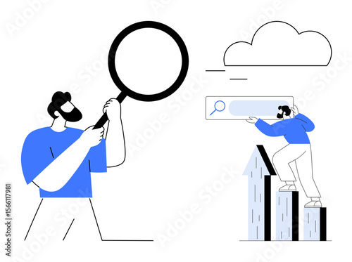 Служба ремонта компьютеров, векторная иллюстрация дизайна в плоском стиле. Крошечные люди-техники ремонтируют разбитый экран ноутбука. Концепция услуг по установке, обслуживанию, восстановлению и диагностике компьютеров.