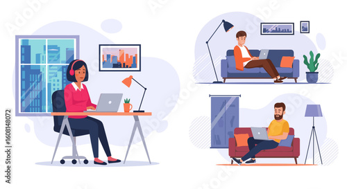 Кондитер женский мультяшный персонаж в шляпе шеф-повара, украшающий глазированный праздничный торт, векторная иллюстрация дизайна в плоском стиле. Мужчина-шеф-повар-пекарь держит поднос с шоколадным тортом. Кондитерская, кондитерская.
