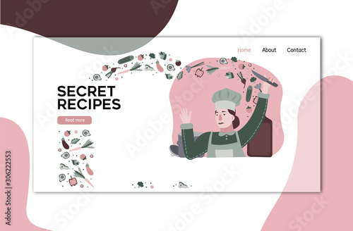 Векторный шаблон веб-сайта кондитера, дизайн веб-страницы и целевой страницы для разработки веб-сайтов и мобильных сайтов. Концепция хлебопекарных и кондитерских услуг.