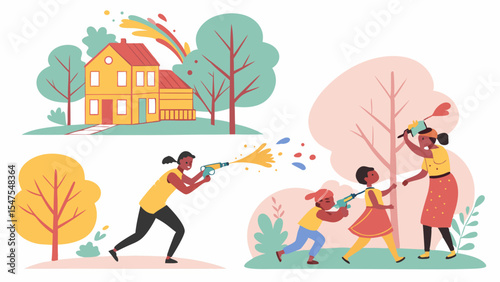 Векторная иллюстрация большого праздничного торта на день рождения и крошечных кондитеров, украшающих его кремом. Концепция услуг по изготовлению тортов для веб-баннера, страницы веб-сайта и т.д.