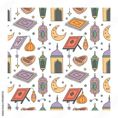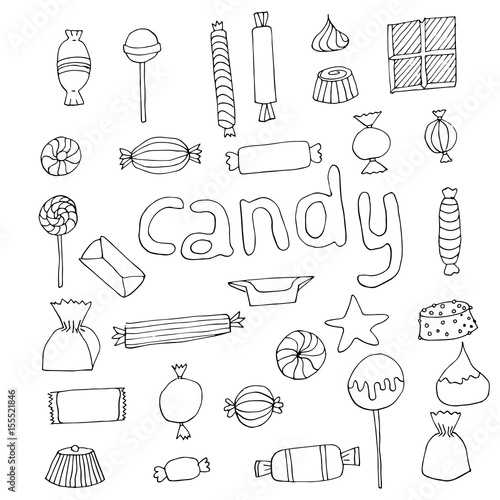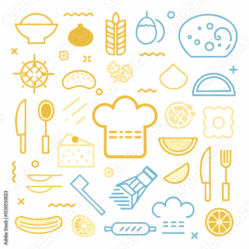 Векторный бесшовный узор с декоративными символами сладких кондитерских изделий, значками. Кондитерский фон, текстура оберточной бумаги, тонкая линия, дизайн в плоском стиле.