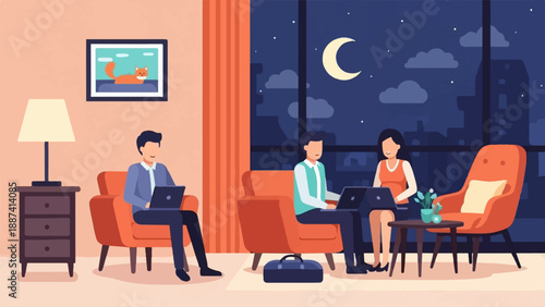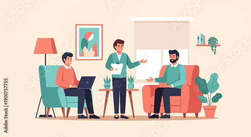 Векторная иллюстрация концепции конференции. Деловая женщина показывает график. Деловые люди встречают элемент дизайна в плоском стиле.