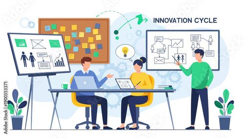 Инженер-строитель, архитектор, дающий презентацию архитектурного проекта строительства дома, плоская векторная иллюстрация. Строительная промышленность. Совещание строительной бригады.