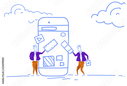 Человек в шлеме, бегущий со свернутыми чертежами, женщина, рисующая карандашом, городская строительная площадка с башенным краном, векторная иллюстрация. Концепция услуг инженера-строителя для страницы веб-сайта и т.д.