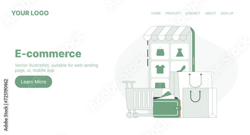 Приготовьте шаблон целевой страницы. Векторная концепция дизайна в плоском стиле для разработки веб-сайтов и мобильных сайтов. Кухонные принадлежности. Фартук, чайник с поварской шапочкой, кухонные ножи, тарелки, лопатки и прихватки.