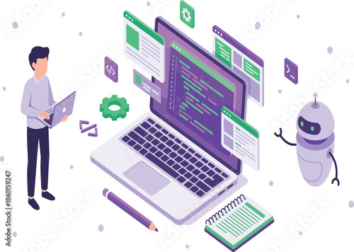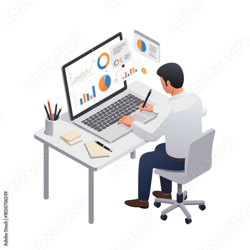 Вектор блога кулинарной школы. Мужчина смотрит вебинар-мастер-класс у себя дома. Презентация нового рецепта сладкого торта. Женщина-шеф-повар выпекает десерт во время потоковой передачи онлайн-видео