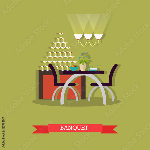 Векторная иллюстрация повара-мужчины, нарезающего овощи. Интерьер кухни ресторана. Элемент дизайна кухни в плоском стиле.