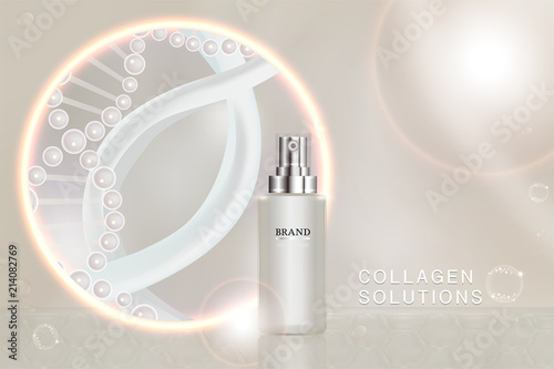 Флакон с вакциной против Covid-19 и шприц для инъекций на подиуме, вырезанные из бумаги коронавирусы, векторная иллюстрация. Кампания по вакцинации против коронавируса, защита от болезни covid.
