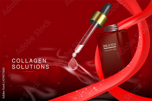 Флакон с вакциной Covid-19 со шприцем для инъекций на подиуме экспозиции, вырезанные из бумаги коронавирусы, векторная иллюстрация. Кампания по вакцинации против коронавируса, защита от заболевания covid.