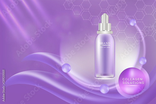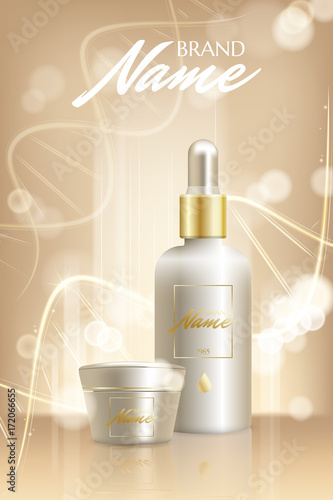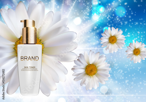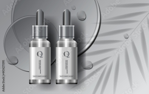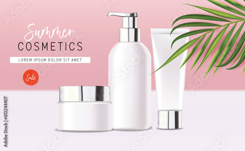 Макет белых пустых косметических бутылок, вырезанный из бумаги цветочный фон в стиле ремесла, векторная иллюстрация. Шаблон рекламы косметических продуктов для красоты и ухода за кожей.