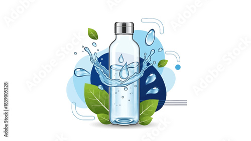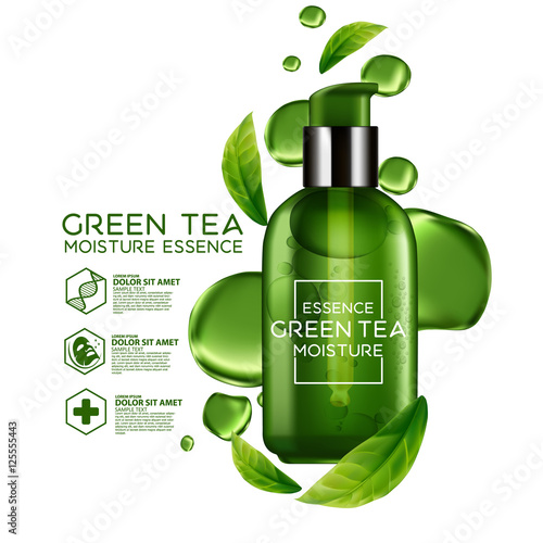 Белый пустой макет бутылки для косметической упаковки, вырезанный из бумаги зеленый цветочный фон, векторная иллюстрация. Шаблон рекламы косметических продуктов для красоты и ухода за кожей.