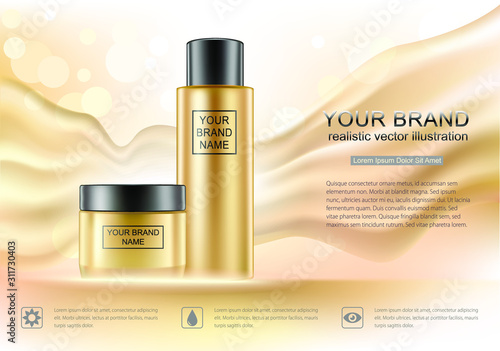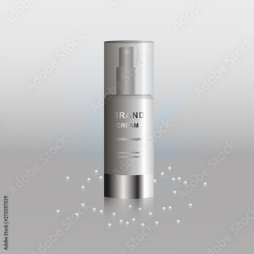 Векторный макет флакона с косметикой. Значок баночки с косметическим средством. Упаковка крема, мыла или шампуня на белом фоне