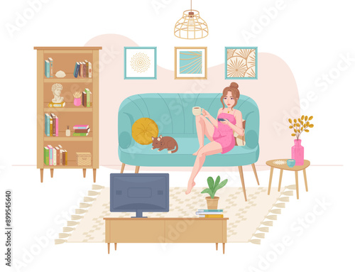 Набор сцен магазина косметики, плоская векторная иллюстрация. Счастливые женщины покупают парфюмерию, средства по уходу за кожей лица и тела. Розничная торговля косметикой и парфюмерией, косметическая промышленность.