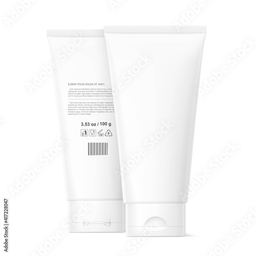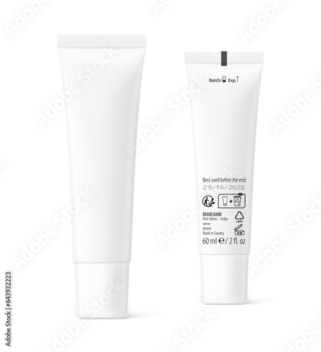 Вектор тюбика с косметикой. Значок упаковки крема. Пустой макет контейнера для лосьона, зубной пасты, геля или шампуня, выделенный на белом фоне