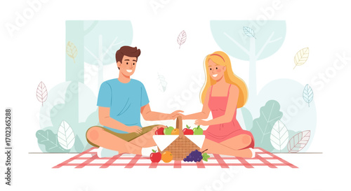 Пара наносит солнцезащитное масло на пляжную плоскую мультяшную векторную иллюстрацию. Мужчина и женщина в отпуске на морском побережье ухаживают за кожей, чтобы защитить тело от солнца. Парень и девушка загорают