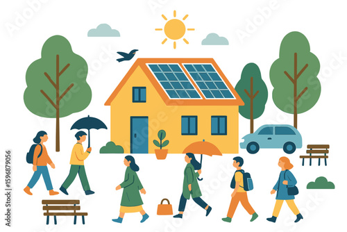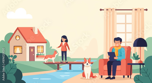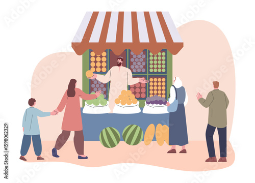 Пара, выбирающая дом для покупки. Векторная иллюстрация концепции недвижимости. Агент по недвижимости предлагает недвижимость на продажу. Брокер помогает людям покупать или арендовать жилье.
