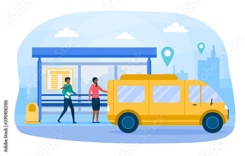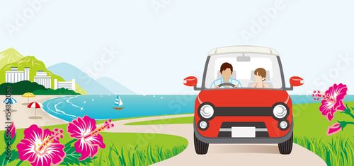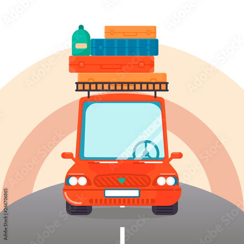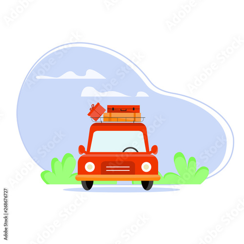 Пара в машине едет в дорожную поездку. Векторная иллюстрация концепции планирования путешествий. Женщина мечтает об отпуске и планирует свой отпускной маршрут. Шаблон дизайна веб-сайта для летних путешествий.