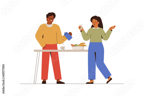 Пара в магазине выбирает обувь векторная иллюстрация. Мужчина и женщина в торговом центре покупают обувь. Широкий ассортимент на полке. Молодая супружеская семейная пара вместе ходит по магазинам