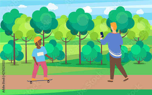Векторная иллюстрация молодой пары играет в бадминтон на улице в хорошую погоду. Спортивный инвентарь, две ракетки для бадминтона и волан. Активный образ жизни на открытом воздухе. Плоский стиль дизайна