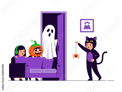 Пара готовит тыкву для вечеринки в честь Хэллоуина на домашней кухне. Векторная иллюстрация концепции традиционного фестиваля Хэллоуина.