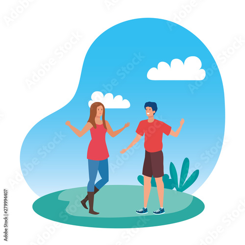 Счастливая пара с протезами ног и рук, наслаждающаяся полноценной жизнью, гуляя вместе, плоская векторная иллюстрация. Образ жизни людей с ограниченными возможностями, отношения с инвалидами, романтическое свидание.