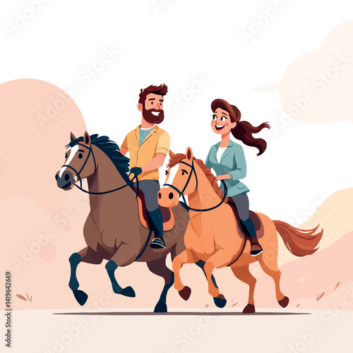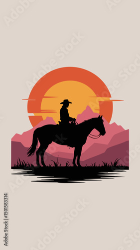 Ковбой скачет верхом на лошади и прицеливается, чтобы бросить лассо. Векторная иллюстрация Дикого Запада в плоском дизайне