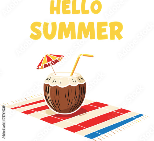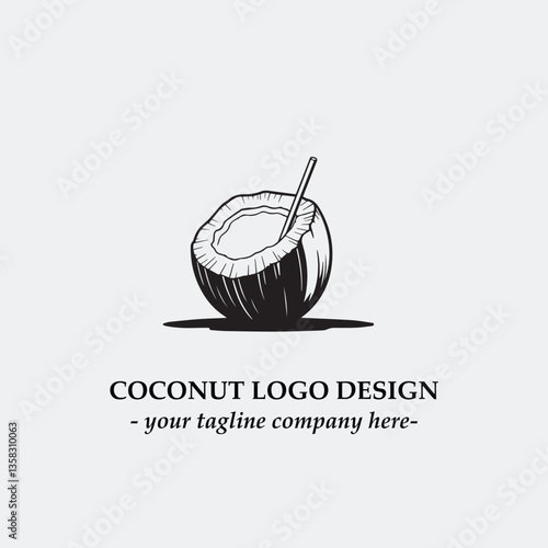 Треснувший кокосовый орех поверх векторной иконки с брызгами молока. Элемент дизайна для сладких продуктов, выделенный на белом фоне