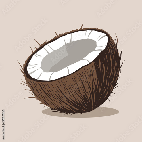 Реалистичная векторная иконка кокоса. Треснувшая скорлупа кокоса выделена на белом фоне. Экзотический орех