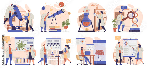 Творческие художники рисуют с вдохновляющим векторным набором. Молодая женщина рисует на холсте, взрослый мужчина-художник кистью делает рисунок на иллюстрации стены дома. Хобби в мастерской-студии