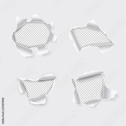 Набор рамок в стиле креативного вырезанного из бумаги ремесла, векторная иллюстрация. Реалистичная дыра, разорванная в листе бумаги. Порванная бумага с рваными краями.
