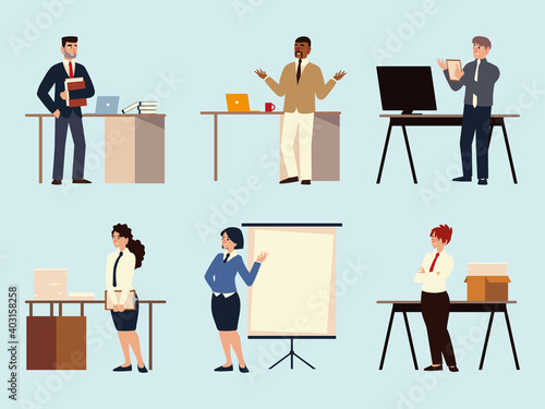 Набор векторных значков людей творческой команды. Креативный директор и его команда программист, создатель, разработчик веб-сайтов, графический дизайнер, системный администратор, человек идеи. Дизайн в плоском стиле.