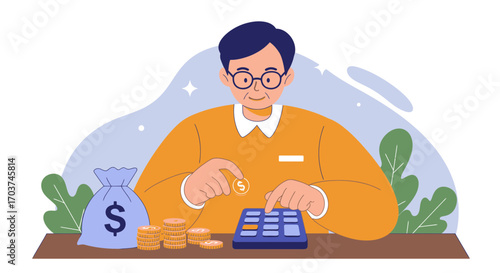 Творческий кризис. Грустный музыкант гитарист, сидящий на траве с карандашом и музыкальными нотами песни в руках, плоская векторная иллюстрация. Творческий кризис и эмоциональное выгорание, депрессия, психический стресс.