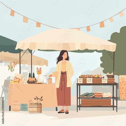 Творческий кризис. Грустная, растерянная, усталая женщина, писательница, сидящая за столом с чистым листом бумаги на нем, плоская векторная иллюстрация. Творческий кризис и эмоциональное выгорание, депрессия, психический стресс.