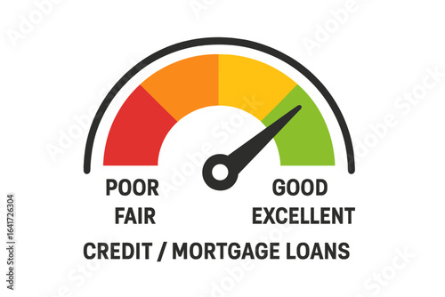 Индикатор кредитного рейтинга с векторным значком низкого и высокого уровня, выделенным белым цветом. Хорошая и плохая финансовая шкала, измерение рейтинга
