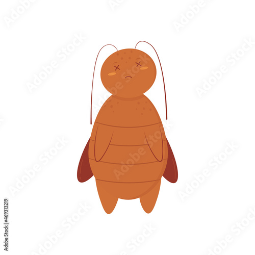 Жуткий персонаж-таракан, поедающий кусочек сыра векторная иллюстрация. Мультяшный забавный персонаж-вредитель, изолированный на белом фоне