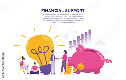Шаблон веб-баннера для краудфандинга. Векторная иллюстрация деловых людей, вкладывающих деньги в электрическую лампочку. Финансовые инвестиции в запуск бизнеса, концепция новых идей для страницы веб-сайта и т.д.