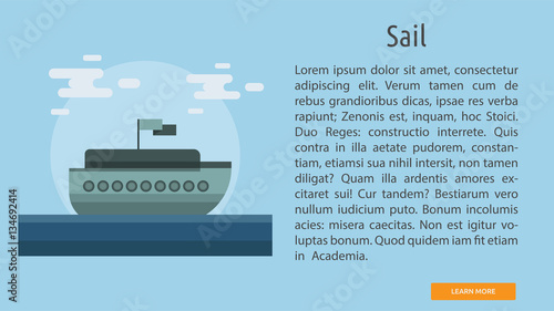 Векторный горизонтальный баннер круизного лайнера. Туристический плакат с большим пассажирским круизным лайнером и местом для текста. Плоский дизайн в линейном стиле.