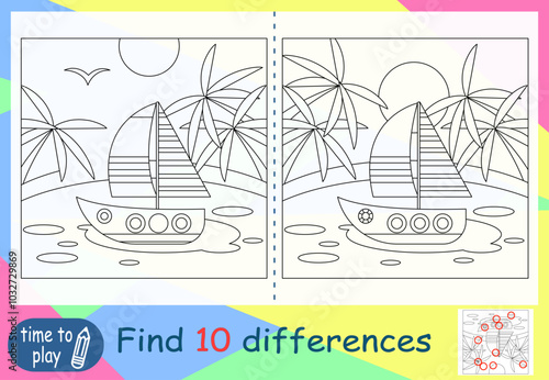 Шаблон баннера плаката круизного времени. Вырезанный из векторной бумаги круизный лайнер, плавающий по океанским волнам, дельфины, чайки, острова с туристическими курортными зданиями, пальмами и копировальным пространством.