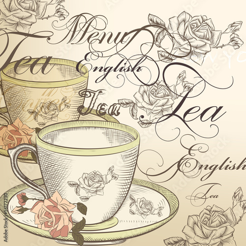 Векторная реалистичная чашка кофе с видом сверху и нарисованными от руки каракулями кофейных напитков вокруг нее. Эскиз винтажного кофейного фона.