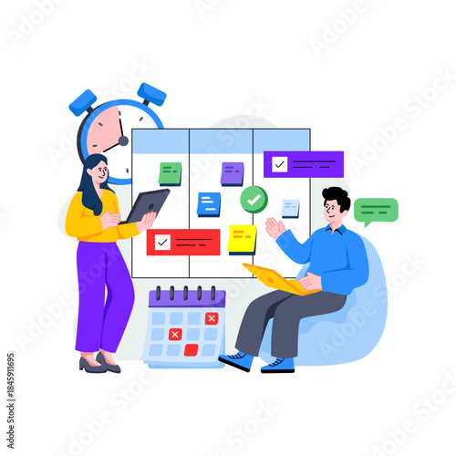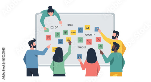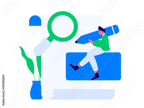 Плоская мультяшная векторная иллюстрация для привлечения клиентов. Привлечение клиентов, реферальный входящий цифровой маркетинг и стратегия продвижения. Влиятельный человек с магнитом бренда приглашает друзей на портативный компьютер