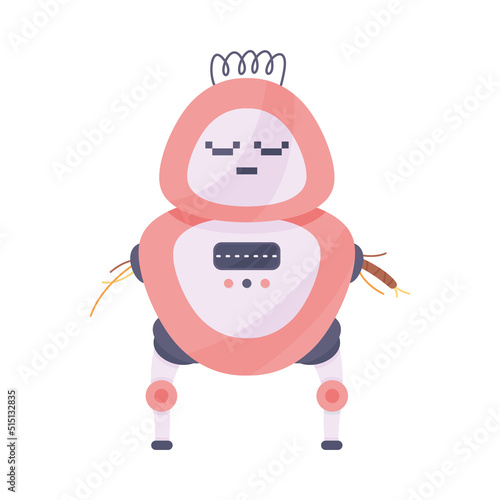 Симпатичный рыцарь в векторе. Мультяшный персонаж средневекового воина в бронированном шлеме со значком атаки мечом, выделенным на белом фоне