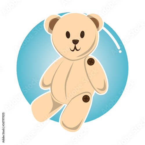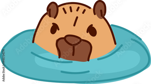 Милый вектор медведя. Забавное лесное животное с изображением надувного кольца для плавания. Веселый летний персонаж гризли, изолированный на белом фоне