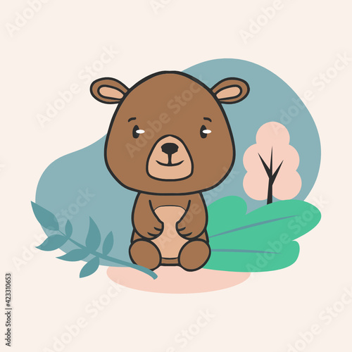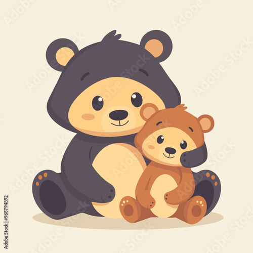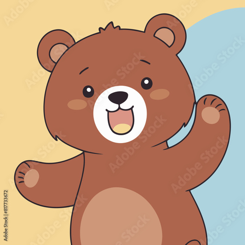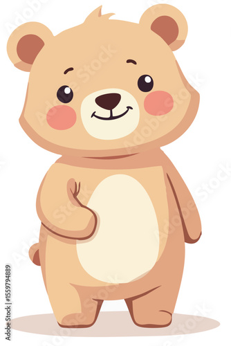 Милый медведь держит в руках векторную иконку весенней птицы. Мультяшный забавный коричневый плюшевый персонаж, изолированная иллюстрация на белом фоне