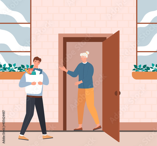 Милый мальчик в костюме призрака Хэллоуина с тыквенной корзиной трюк или угощение конфетами, плоская векторная иллюстрация. Традиция празднования Хэллоуина "Трюк или угощение" для детей и взрослых.